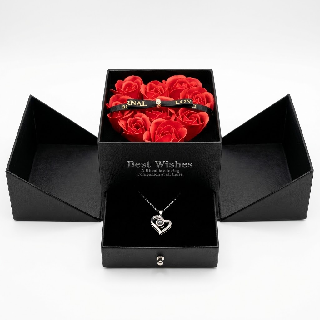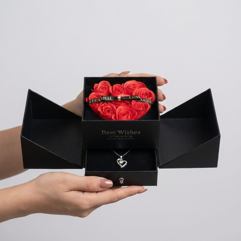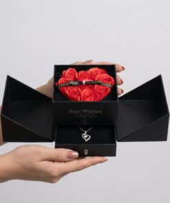 Luksuzna kutija sa večnim ružama i ogrlicom – Simbol ljubavi koji ne bledi